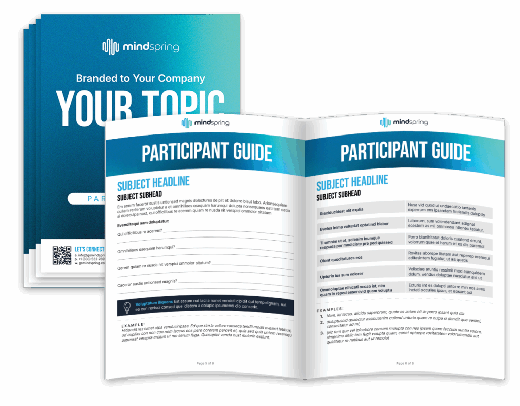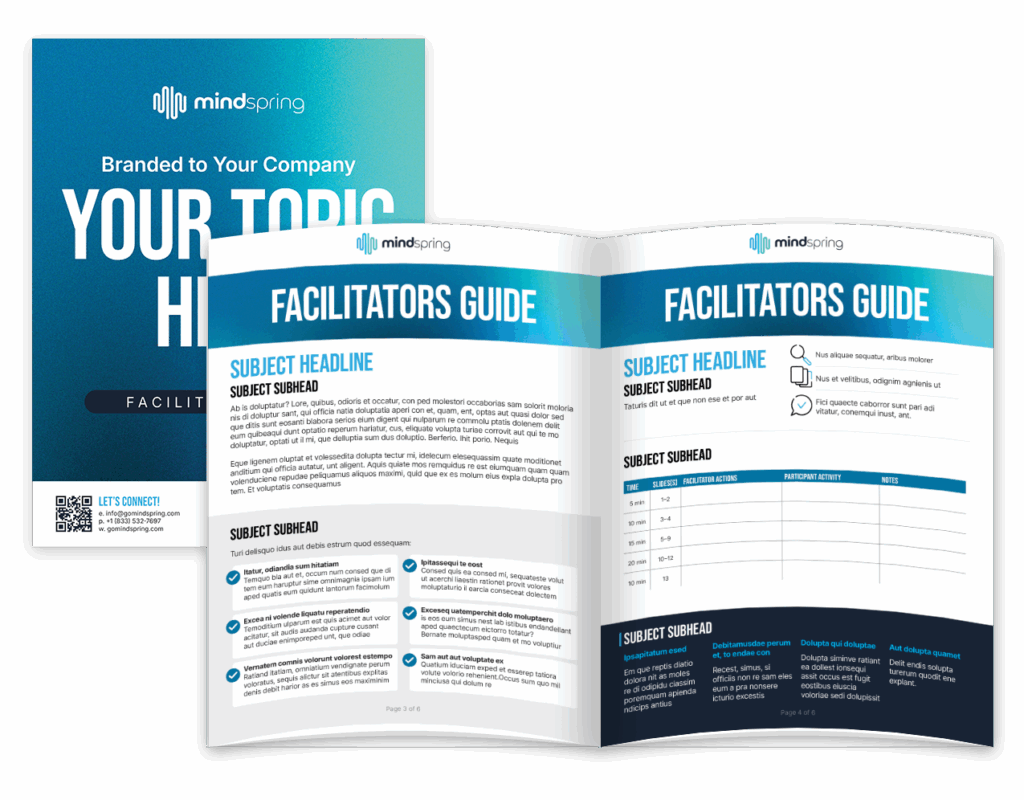 Every organization has unique goals, audiences, and expertise. That’s why our packages are designed to flex — aligning your content, facilitators, and learners around measurable outcomes. Each set of branded materials supports confident delivery, active participation, and real performance improvement across your teams